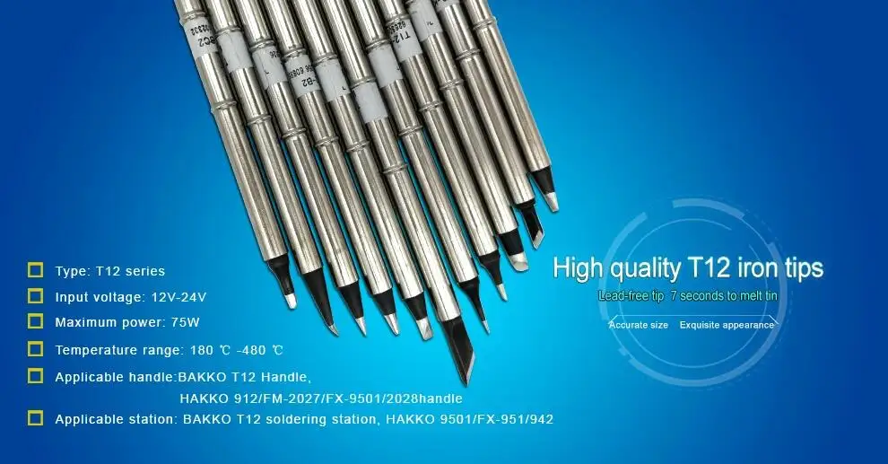 QUICKO High quality Soldering Tips high-grade XA-T12-K KU ILS BC2 Solder Iron 7s melt tin Welding tools for T12 handle station