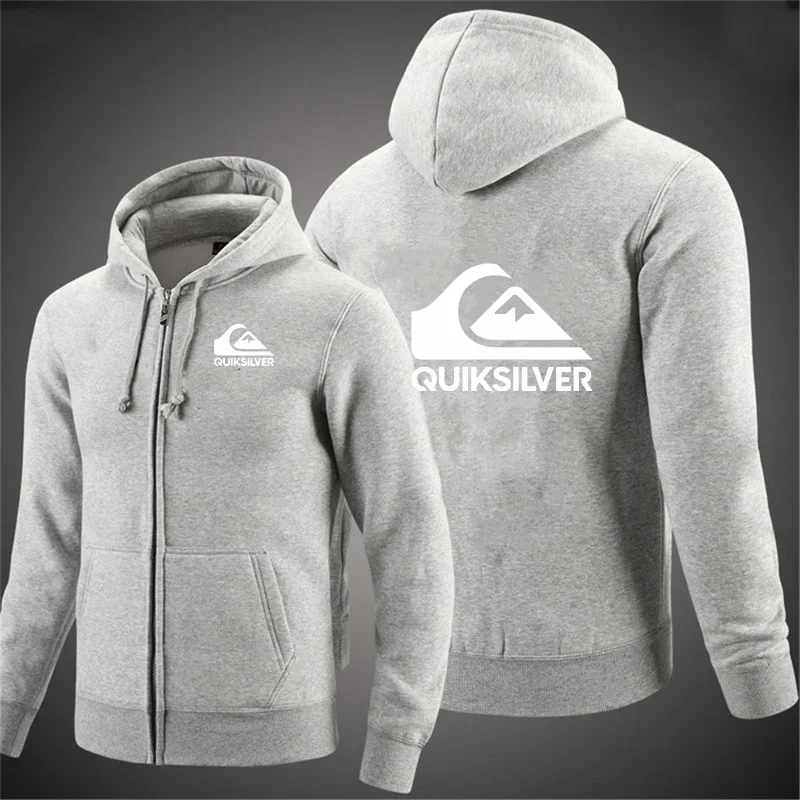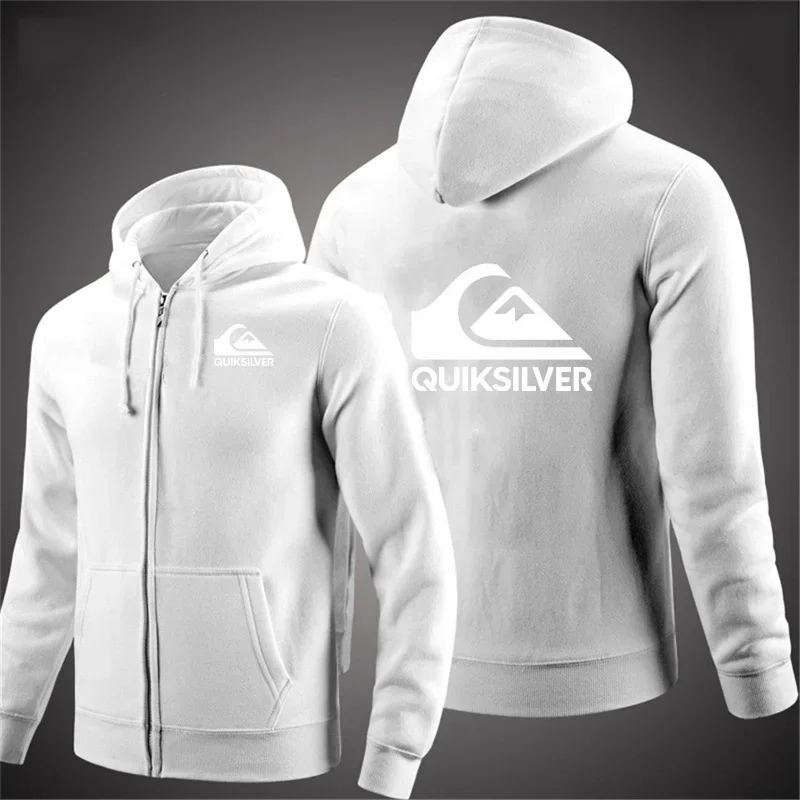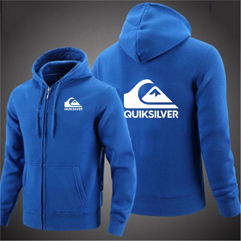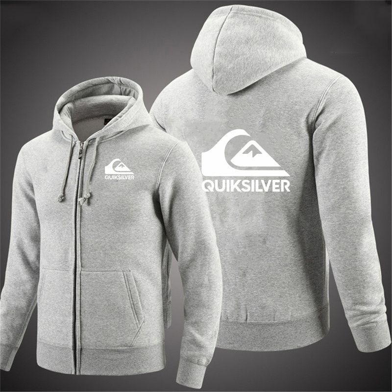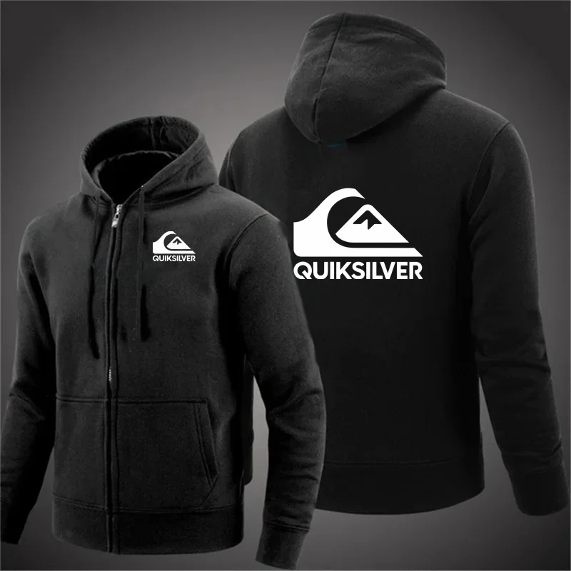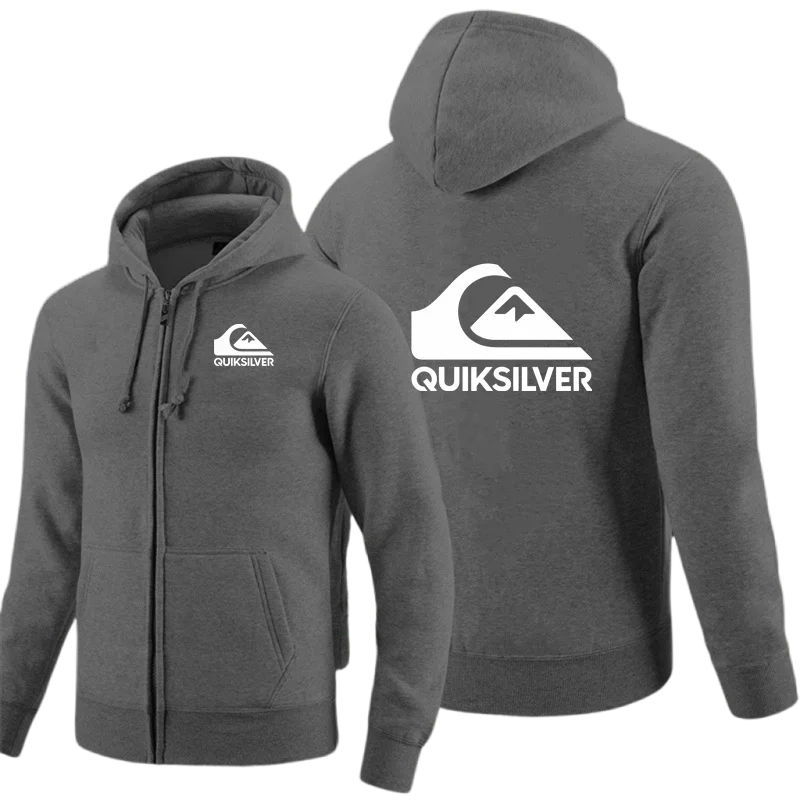 Quiksilver Men's Hooded Jacket Autumn Winter Casual Zipper Cardigan Printed Trendy Brand Hoodie with Letter Design