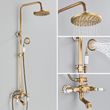 Quyanre Antique Brass Shower Faucets Set Wall Mount Antique Brass Shower Kit Dual Knobs Mixer Tap Handheld Spray Bathtub Kit
