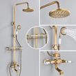 Quyanre Antique Brass Shower Faucets Set Wall Mount Antique Brass Shower Kit Dual Knobs Mixer Tap Handheld Spray Bathtub Kit