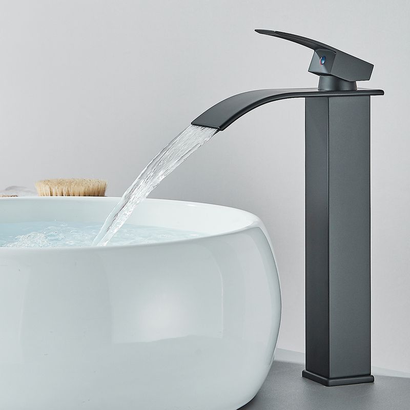 Quyanre Matte Black Waterfall Basin Faucet Single Handle Mixer Hot Cold Water Basin Crane Tap For Bathroom Wash Basin Mixer Tap