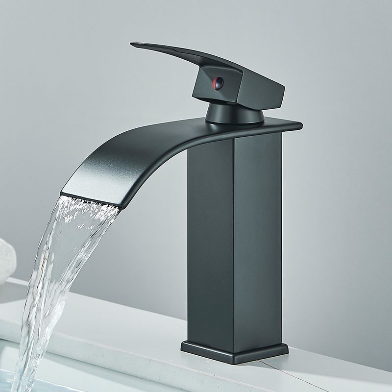 Quyanre Matte Black Waterfall Basin Faucet Single Handle Mixer Hot Cold Water Basin Crane Tap For Bathroom Wash Basin Mixer Tap