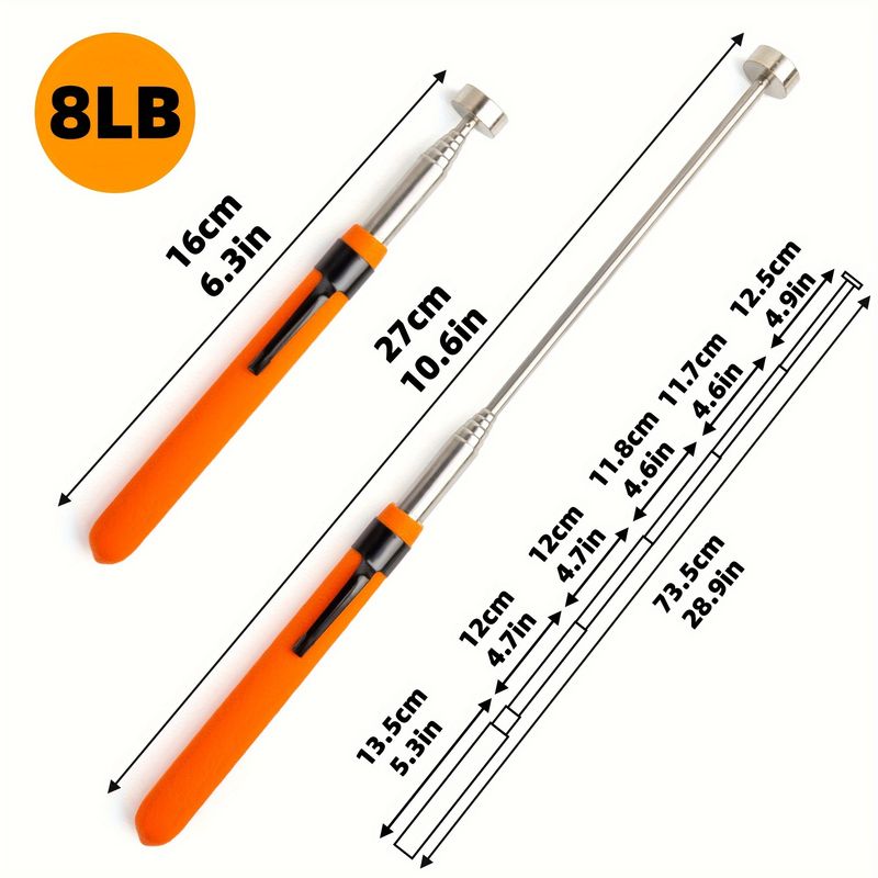 QVAMILLT Magnetic Pickup Tool - Durable Metal, Polished Finish, Magnet for Easy Retrieval of Iron Objects, Magnetic Pickup Tool