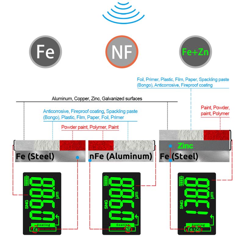 R&D ET330+Zn Car Paint Coating Thickness Gauge Zinc Electroplate Metal Tester Fe NFe Thickness Meter for Auto Paint Measurement