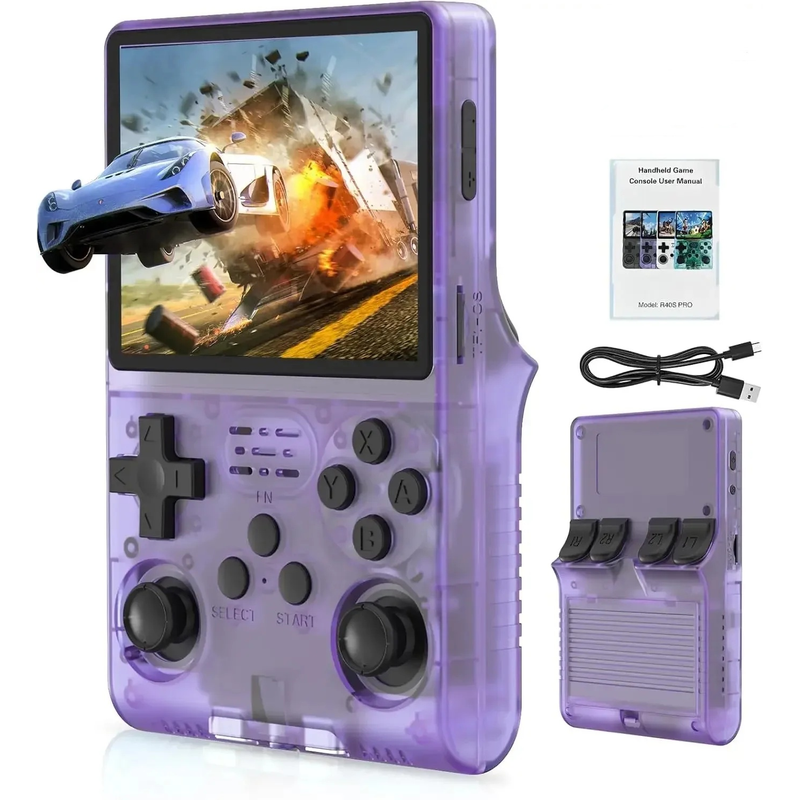 【R40S PRO new system】 1.5GHz 64-bit RK3326 CPU, Mali-G31MP dual-core GPU, 1GB RAM; the new operating system provides a more responsive and smoother experience. Pre-installed with 30000+ games, it supports 20+ mainstream simulators