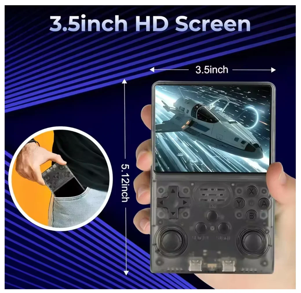 【R40S PRO new system】 1.5GHz 64-bit RK3326 CPU, Mali-G31MP dual-core GPU, 1GB RAM; the new operating system provides a more responsive and smoother experience. Pre-installed with 30000+ games, it supports 20+ mainstream simulators