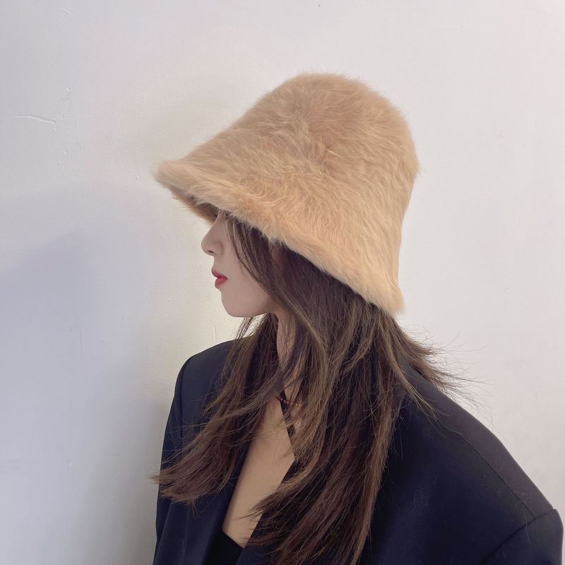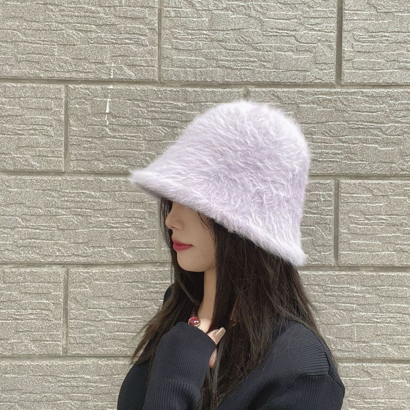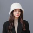 Rabbit Hair Bucket Fashionable Warm Hat Cyan One size
