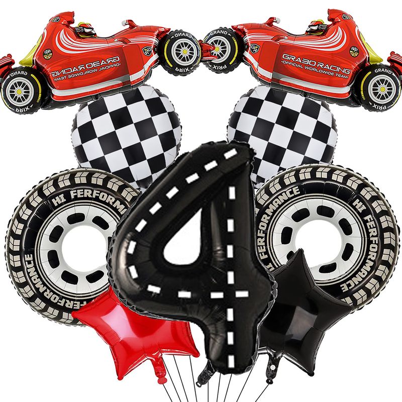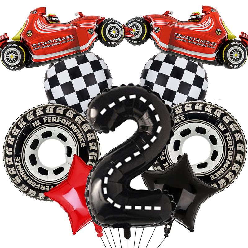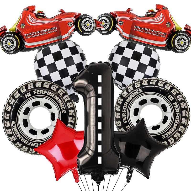 Race Car Birthday Decoration Balloons 40Inch Racetrack Black Number Balloon for Boys Racing Car Birthday F1 Party Decor Supplies
