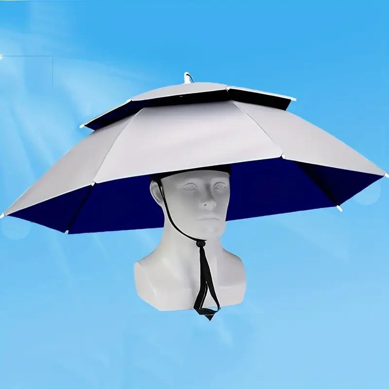 Rain Umbrella Hat Foldable Sun Shade Waterproof Fishing Headwear Cap Beach Head Hats Double-Layer UV Protection Sunscreen