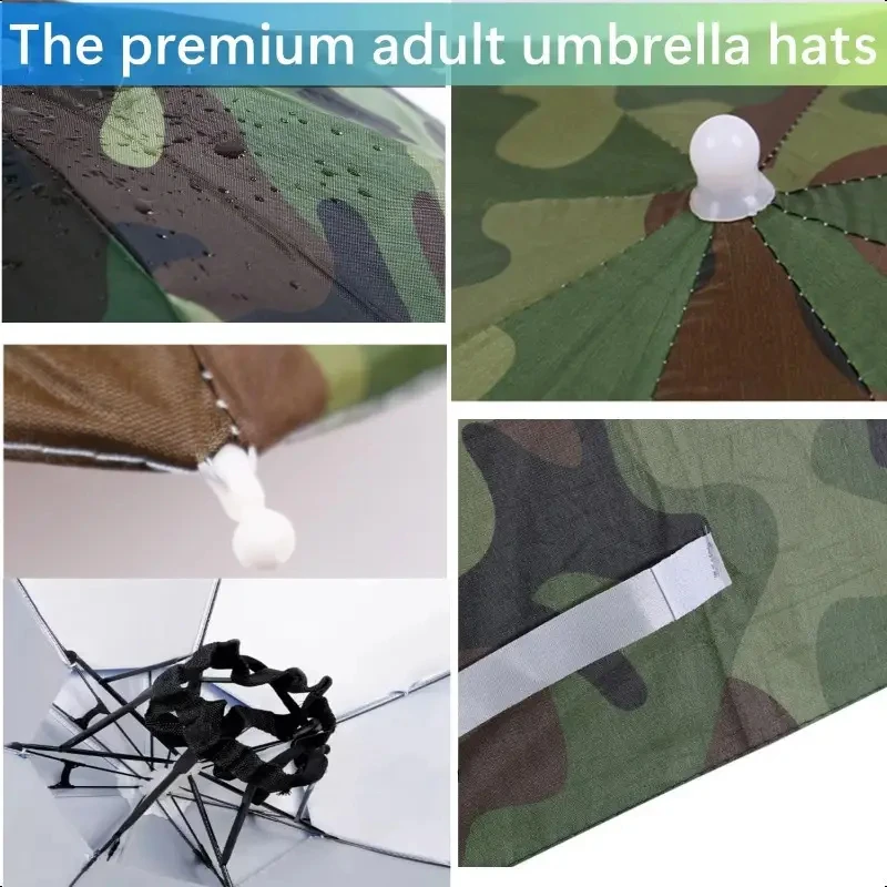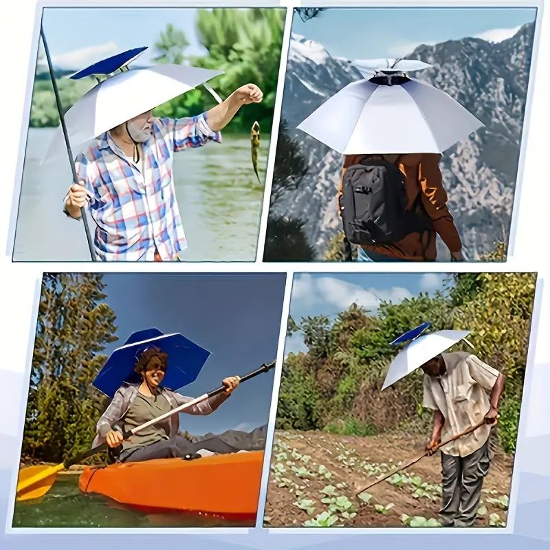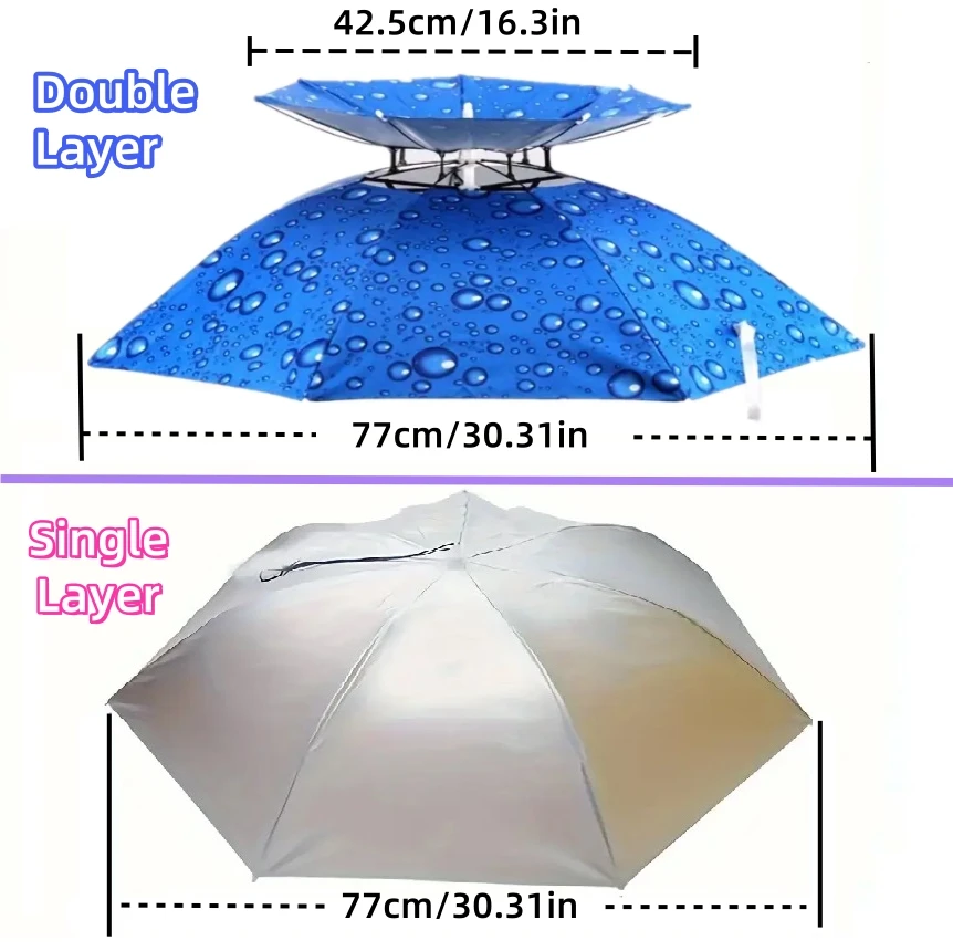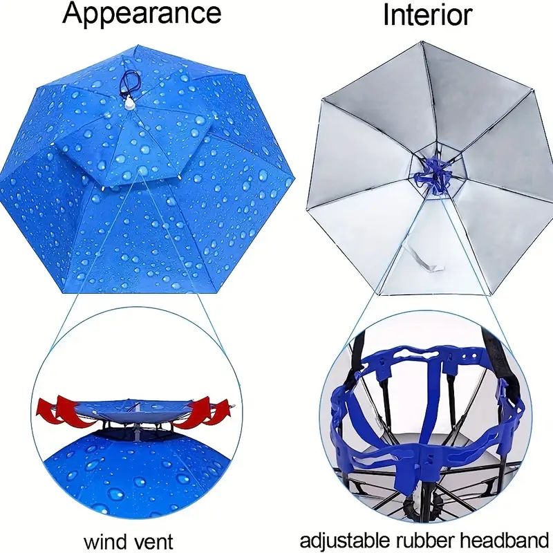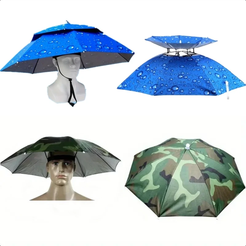 Rain Umbrella Hat Foldable Sun Shade Waterproof Fishing Headwear Cap Beach Head Hats Double-Layer UV Protection Sunscreen
