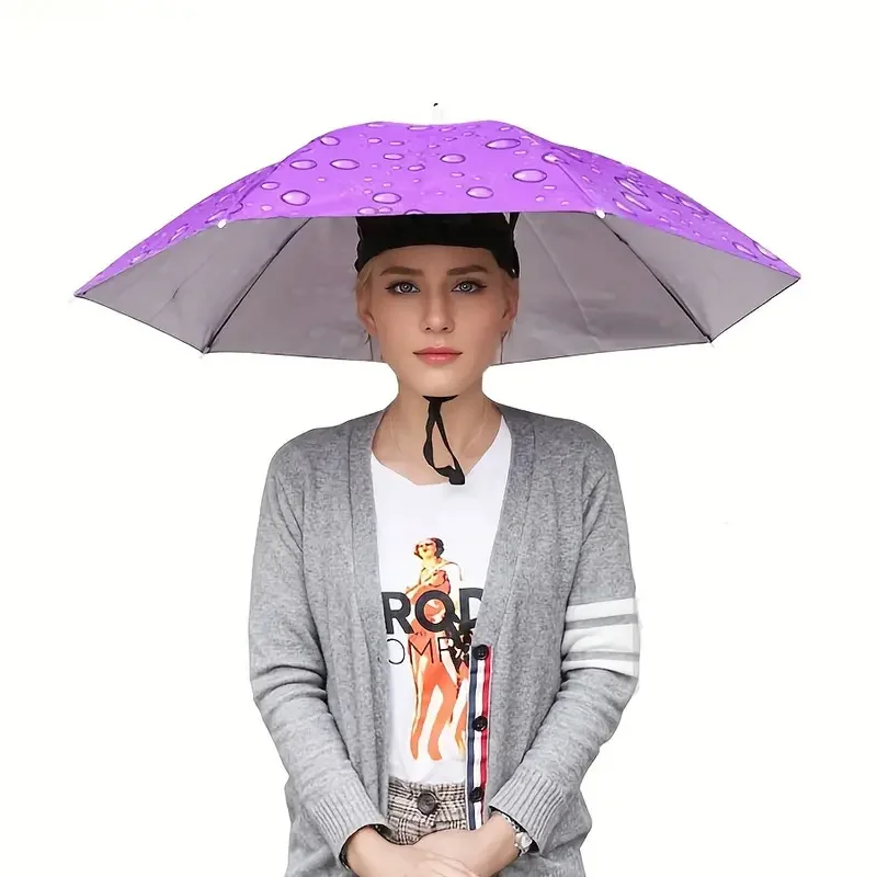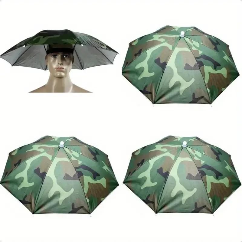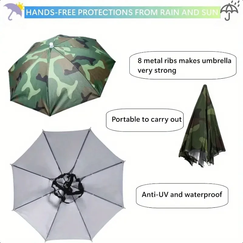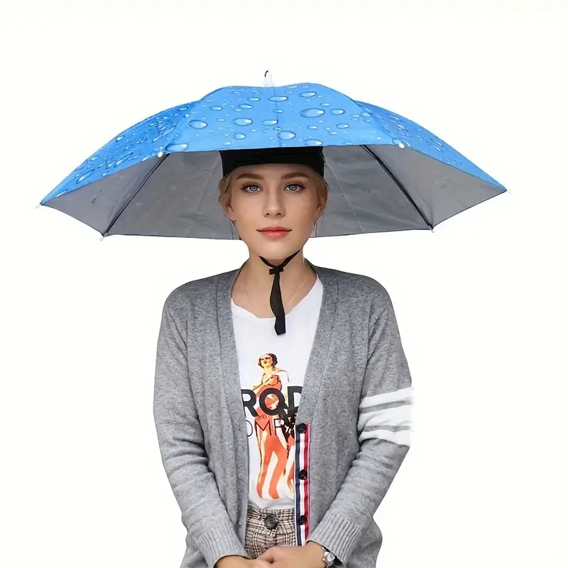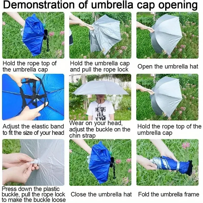 Rain Umbrella Hat Foldable Sun Shade Waterproof Fishing Headwear Cap Beach Head Hats Double-Layer UV Protection Sunscreen