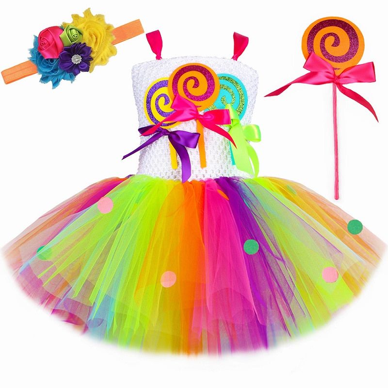 Rainbow Candy Lollipop Costume for Girls Birthday Party Tutu Princess Dress Ball Gown Kids Carnival Christmas Halloween Clothes