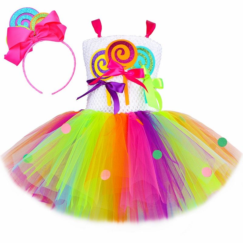 Rainbow Candy Lollipop Costume for Girls Birthday Party Tutu Princess Dress Ball Gown Kids Carnival Christmas Halloween Clothes