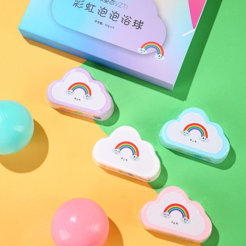 Rainbow cloud bath aromatherapy ball, children's bath cleaning bathtub, bath essential oil 45g, bubble bombs, 4-pack
