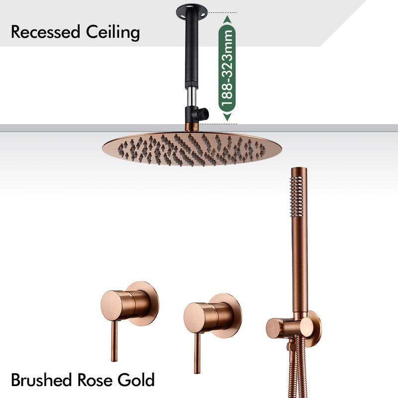 Rainfall Shower Set Rose Gold Wall Mounted Bathroom Shower Mixer Brass Faucet Hot Cold Water Mixer Tap With Head 8/10/12 Inch