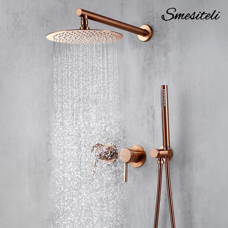 Rainfall Shower Set Rose Gold Wall Mounted Bathroom Shower Mixer Brass Faucet Hot Cold Water Mixer Tap With Head 8/10/12 Inch