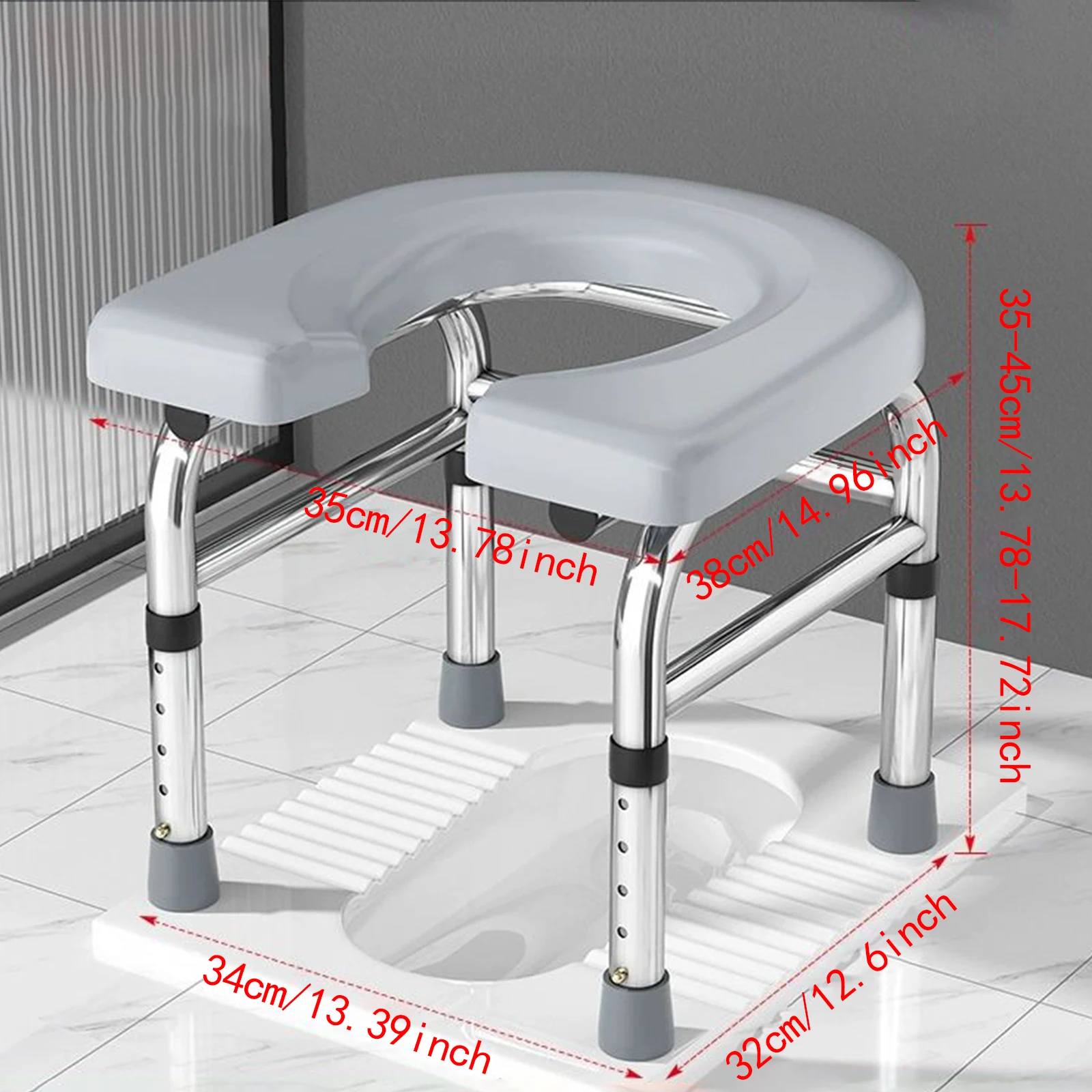 【Premium Material】: This toilet chair seat is made of thickened load bearing stainless steel and can easily bear 150kg. Its sturdy structure ensures stability and will not deform, allowing family members to use it with peace of mind