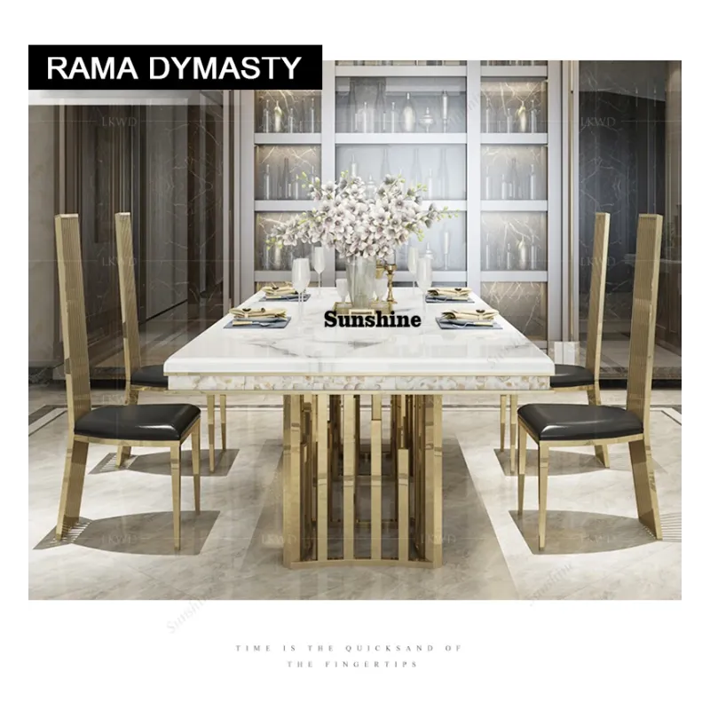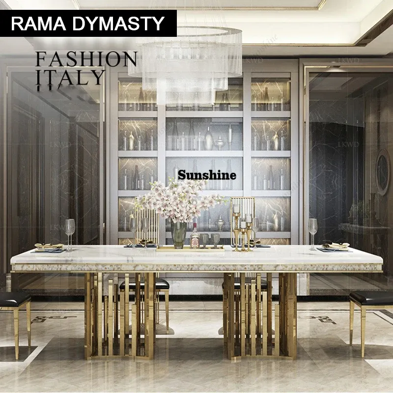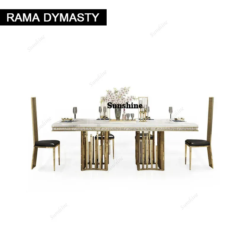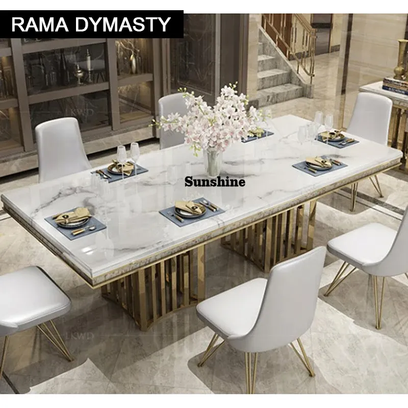 Rama Dymasty stainless steel Dining Room Home Furniture modern marble dining table rectangle table FT