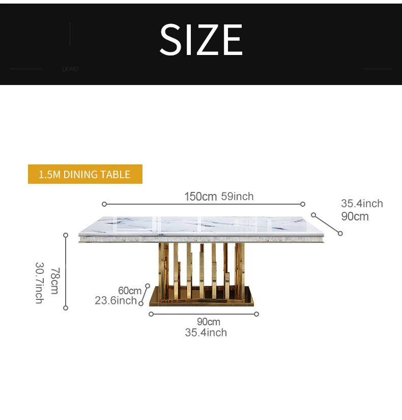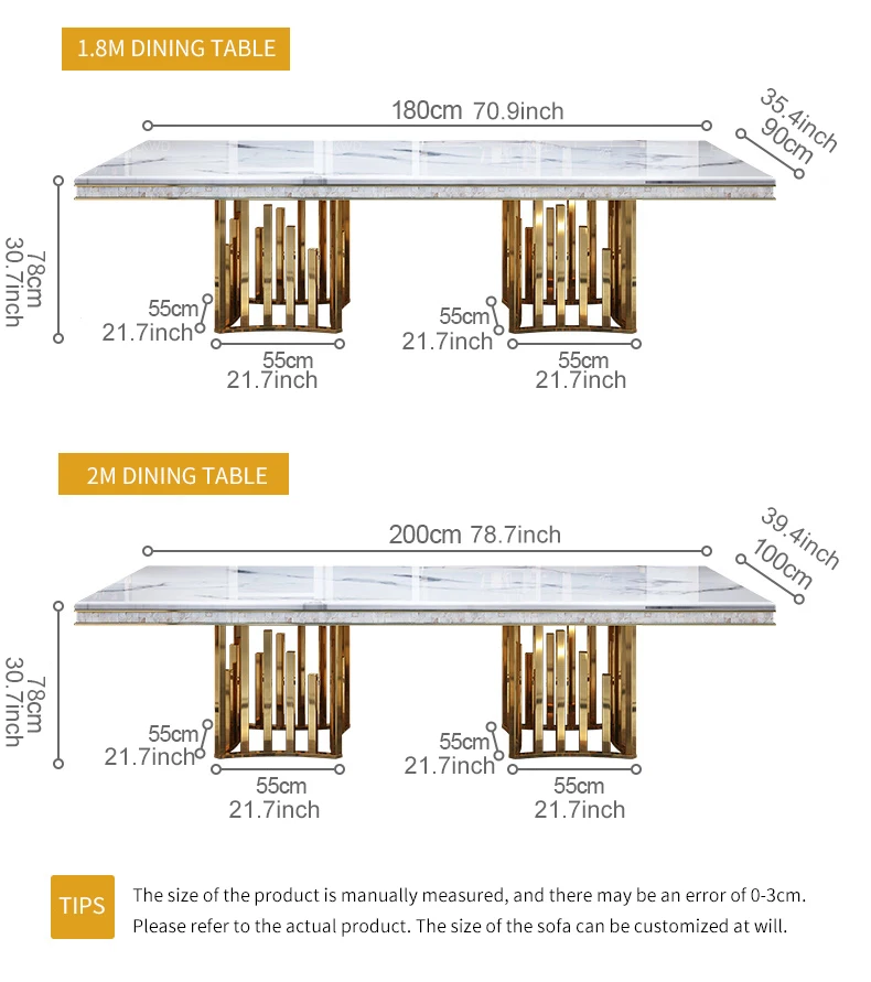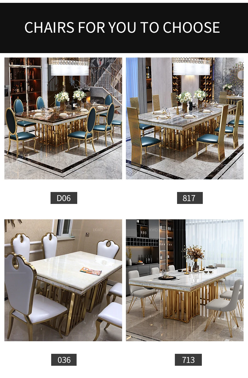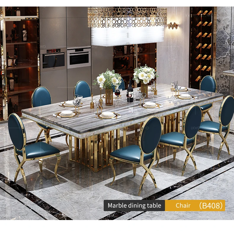 Rama Dymasty stainless steel Dining Room Home Furniture modern marble dining table rectangle table FT