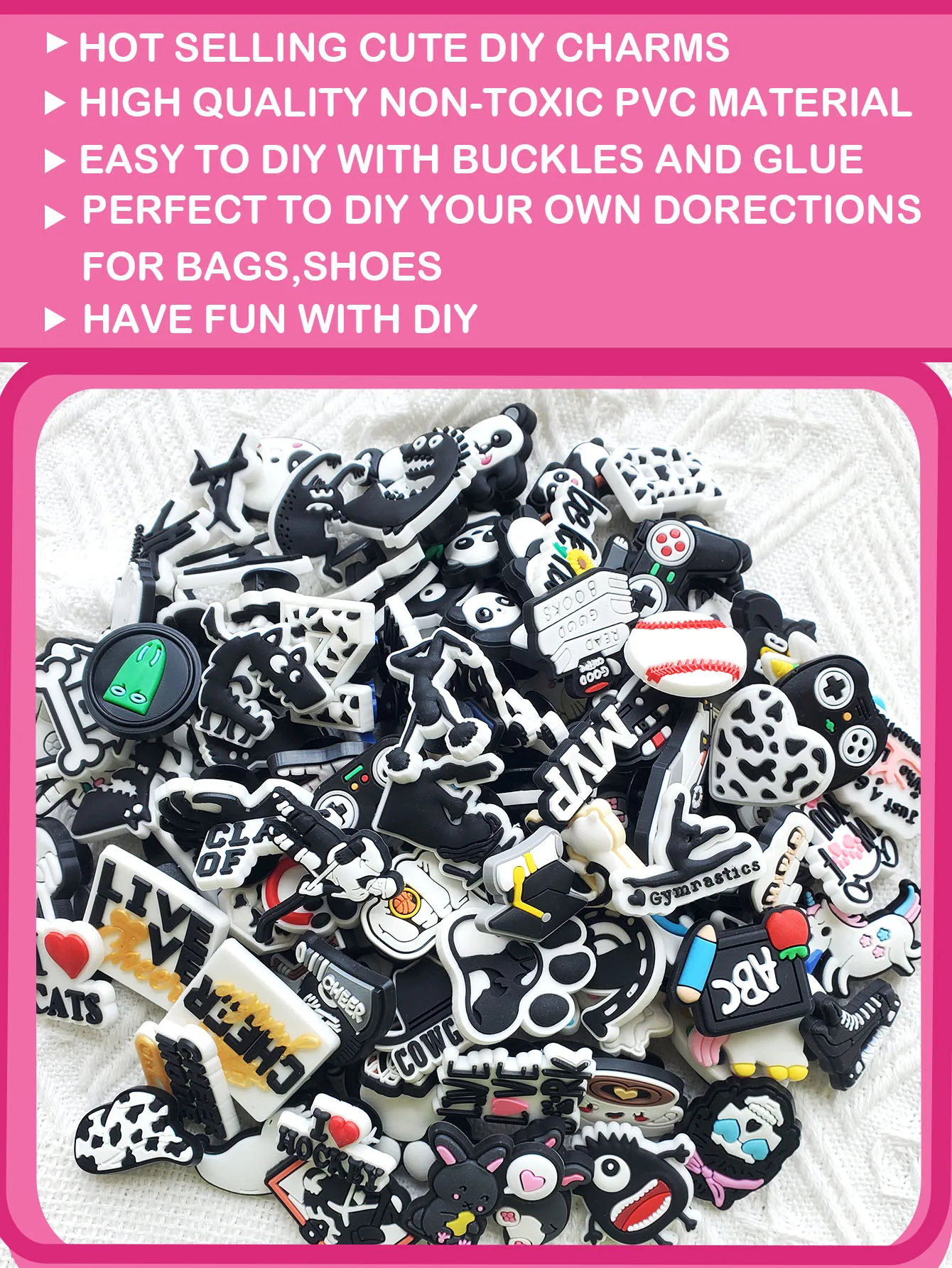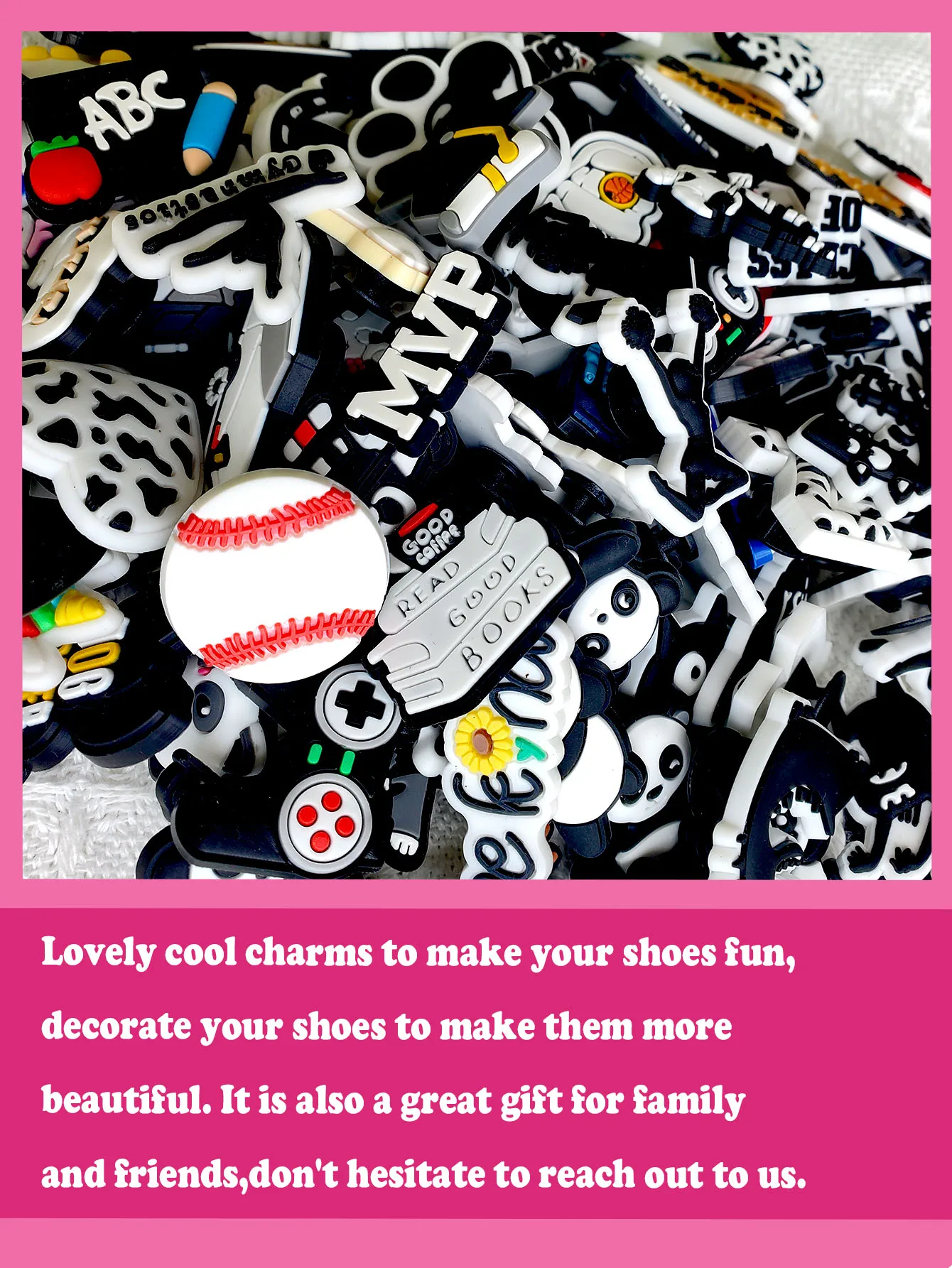【GOOD QIALITT MATERIAL】- Our shoe charms are made of good quality non-toxic waterproof PVC material. After rigorous testing, they are durable, not easily deformed and not fade.