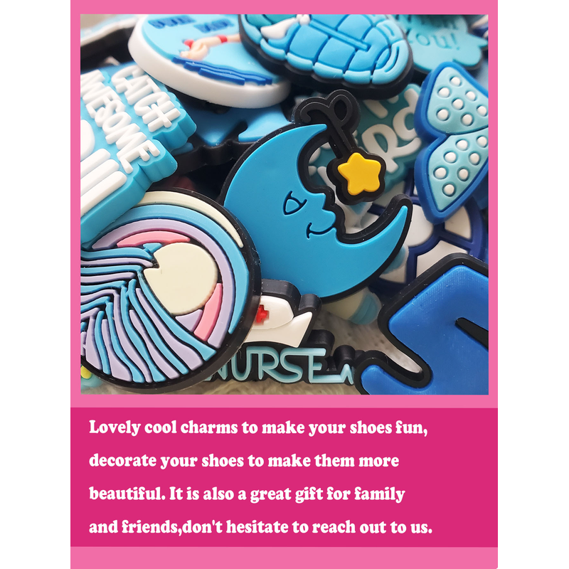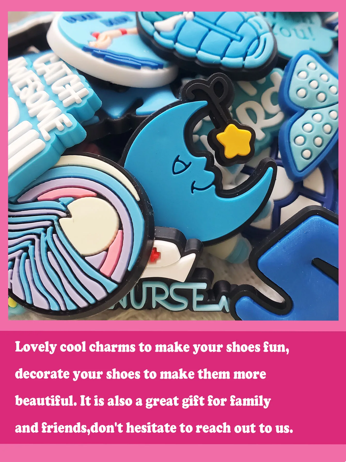 Random 10-50Pcs Blue Series Shoe Charms For Sandals,Shoe Decoration Accessories Shoe Pins Great Gift For Men Women