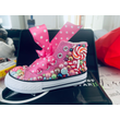 Random Lollipop Rainbow Candy Canvas Simulation DIY Kids Pearls Sneakers For Girl Birthday Party Dollbling Handmade Bling Shoes