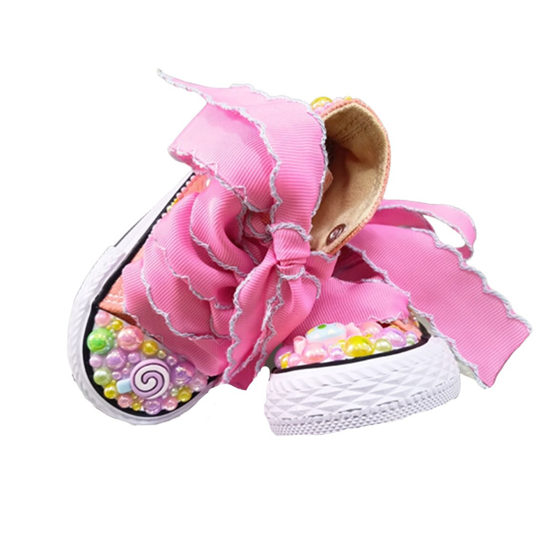 Random Lollipop Rainbow Candy Canvas Simulation DIY Kids Pearls Sneakers For Girl Birthday Party Dollbling Handmade Bling Shoes