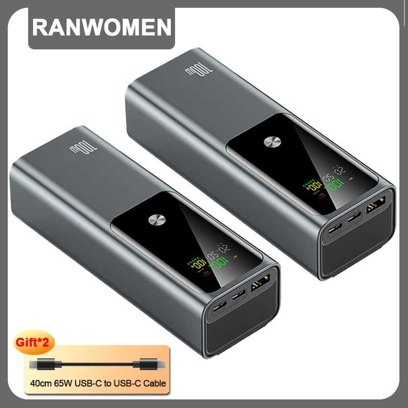 Ranwomen 20000mAh High-capacity Power Bank LED Digital Display Portable Charger External Battery 100W Fast Charging For Laptop