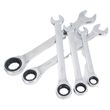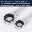 Ratcheting box-end needs as little as 5 degrees to move fastener VS. 30 degrees for standard box end wrenches