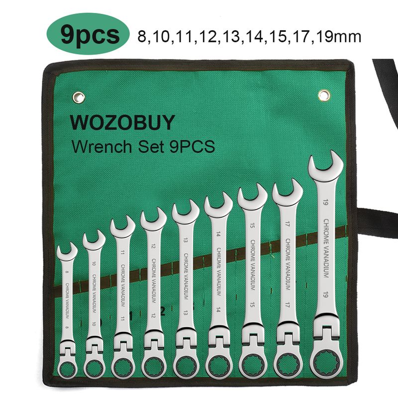Ratchet Spanner Wrench Set 8-22mm Gear Ring Ratcheting Combination Wrench Kit Metric Flexible Head with Canvas Bag