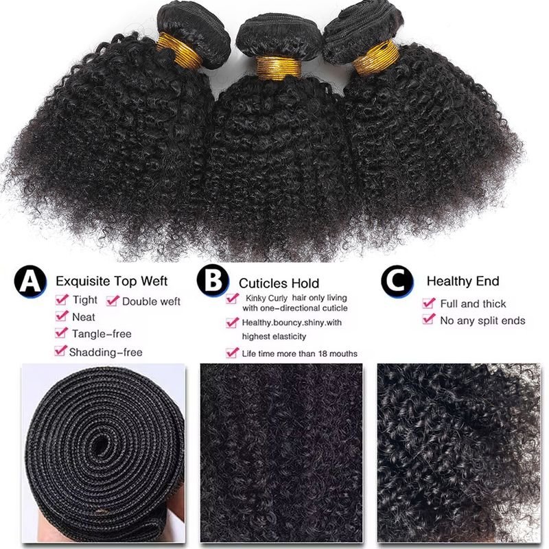 Raw Indian Afro Kinky Curly Human Hair Bundles 4B 4C Natural Virgin Curly 100% Soft Human Hair Weave Bundle Hair Extension Weft