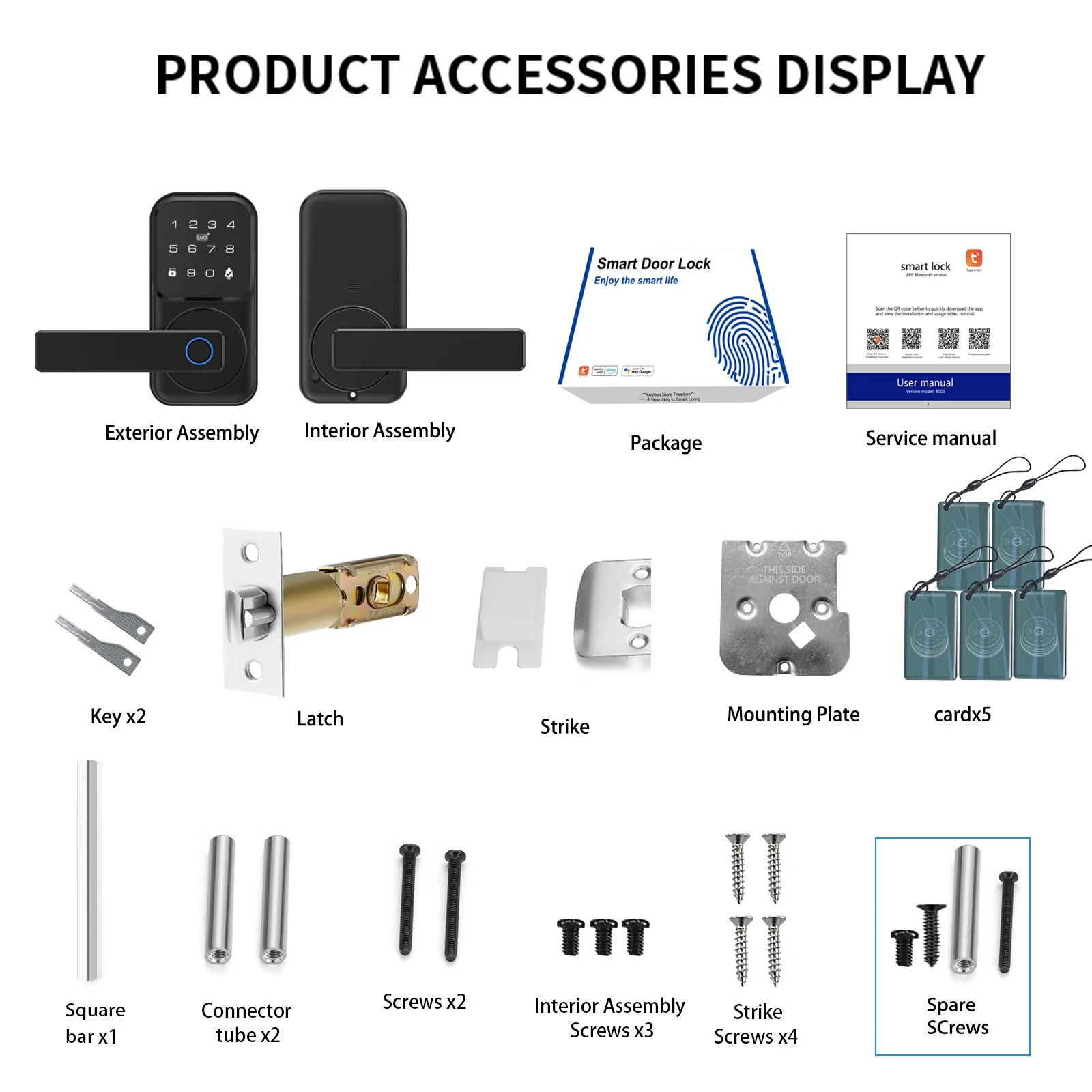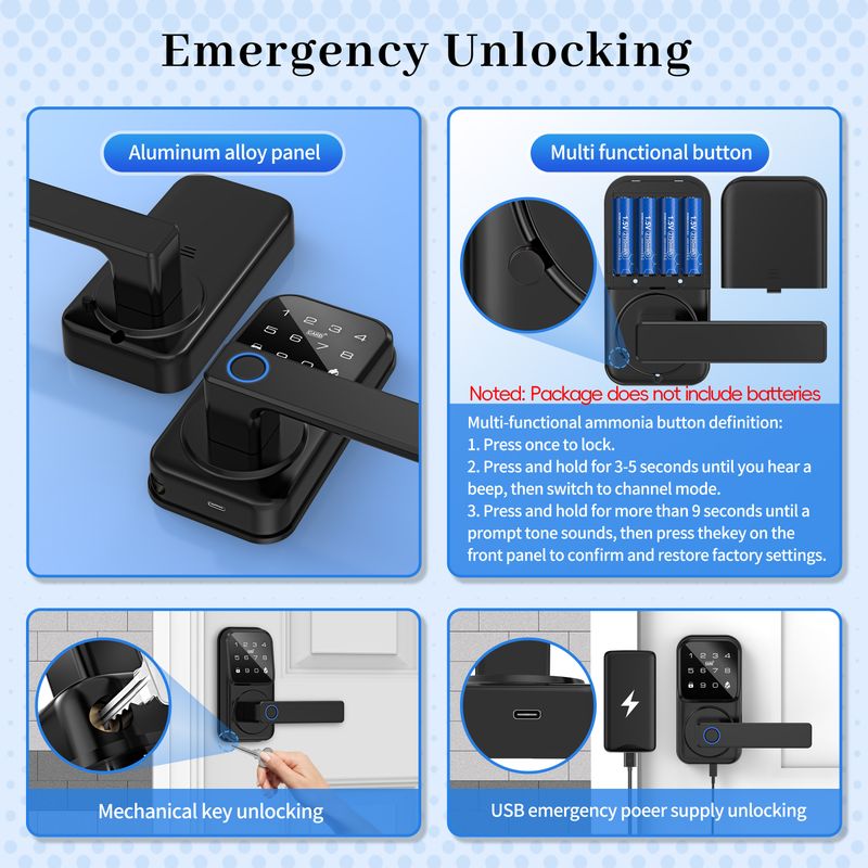 7. Mechanical keys and emergency power on (Type-C Port) can be used when the door lock is out of power.