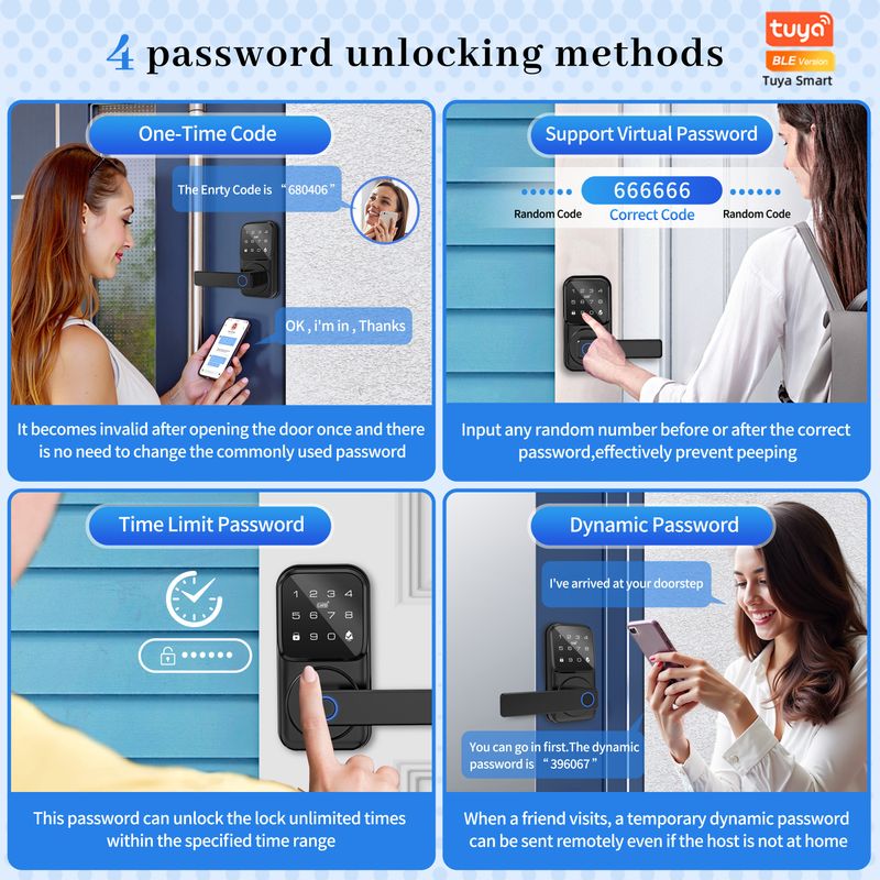 4 password unlocking methods can be set on Tuya APP