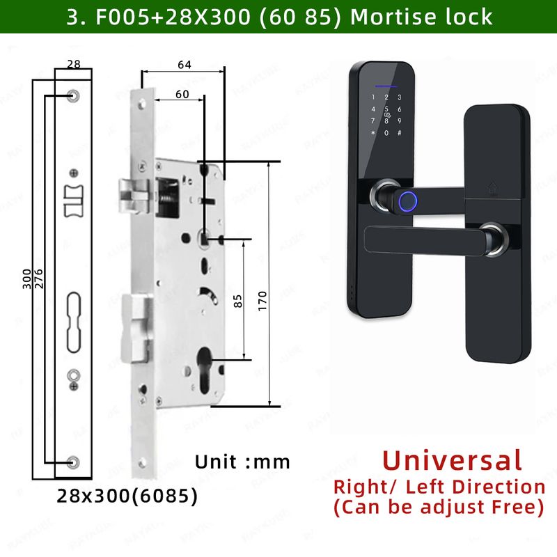 • Unlock methods: Tuya APP/ Fingerprint / Password / Smart Card / Key Unlock