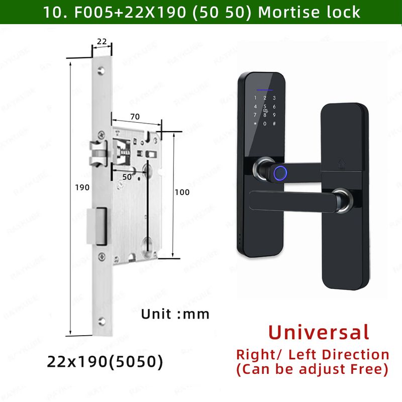 • Unlock methods: Tuya APP/ Fingerprint / Password / Smart Card / Key Unlock