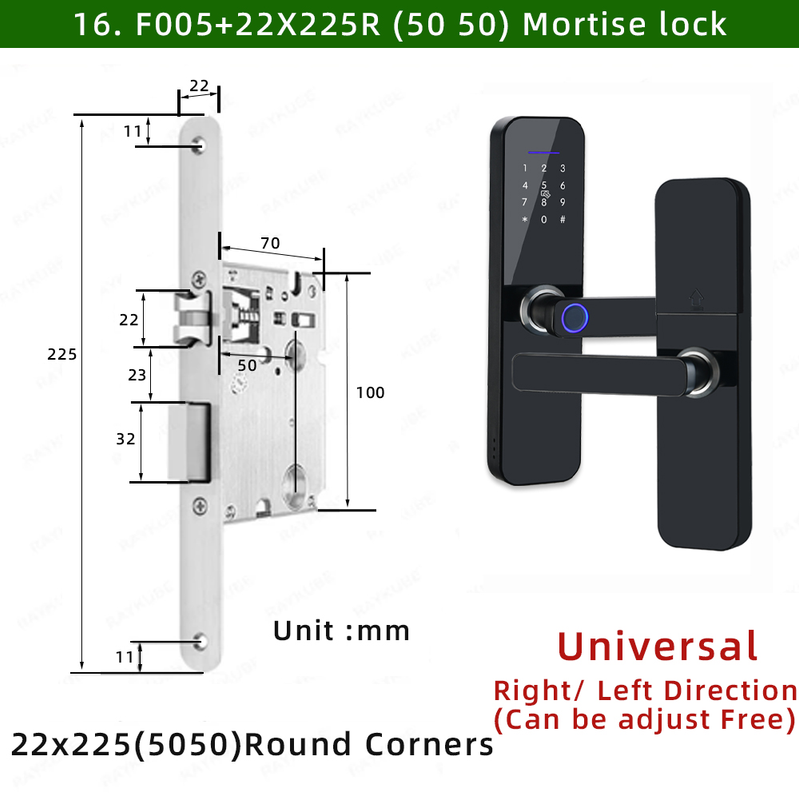 • Unlock methods: Tuya APP/ Fingerprint / Password / Smart Card / Key Unlock