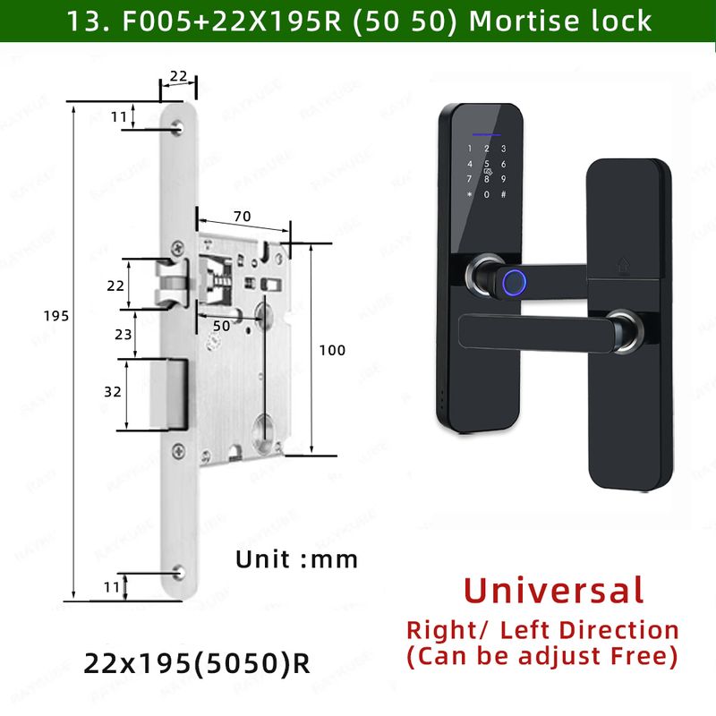 • Unlock methods: Tuya APP/ Fingerprint / Password / Smart Card / Key Unlock
