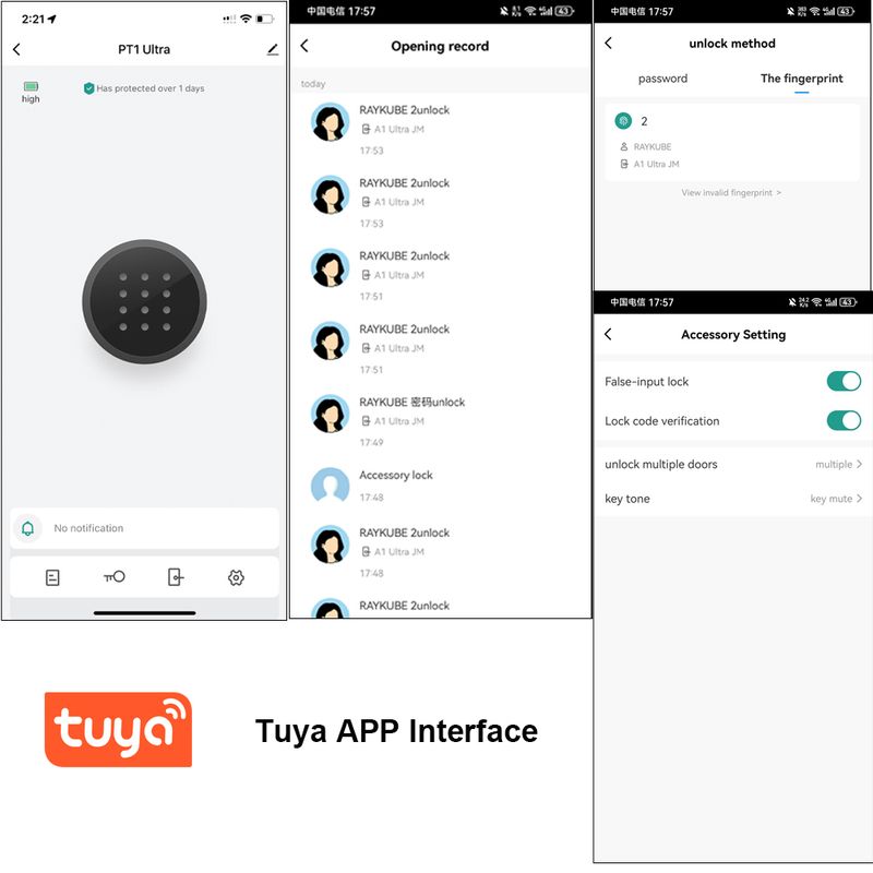 Tuya APP management, can set temporary passwords, one-time passwords, fingerprints, and view unlock records