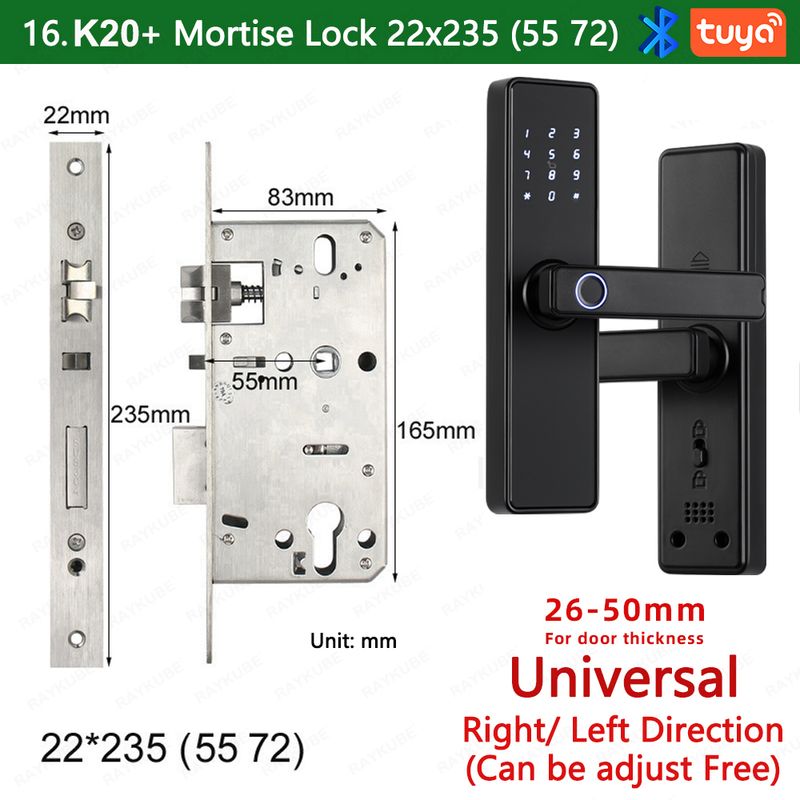 RAYKUBE K20 9-language Biometric Fingerprint Door Lock Electronic Door Lock with Tuya APP/IC Card/Password/ Key Unlock