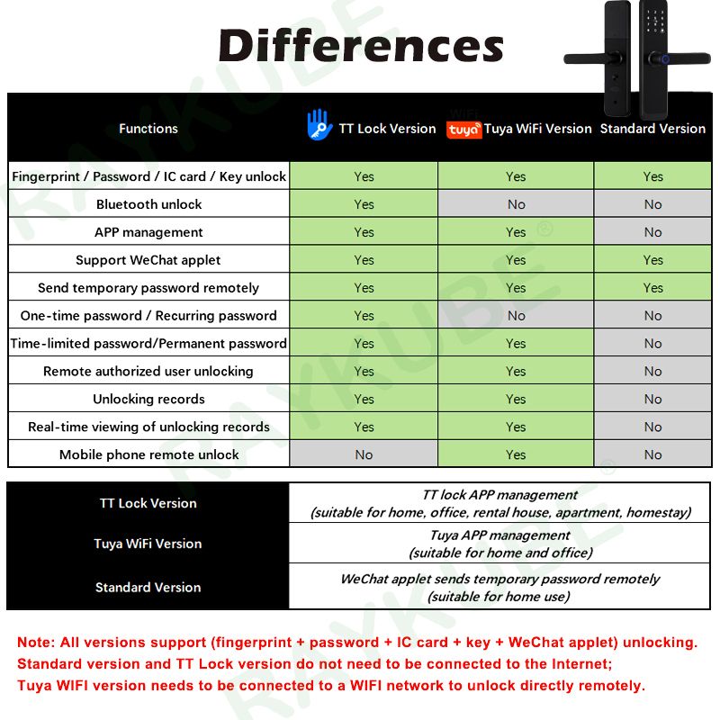 There are 2 versions of K8 : TT Lock Version / Tuya WiFi 8-language Version.  According to your needs, choose a smart lock suitable for your home