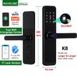 NEW RAYKUBE K8 Tuya Wifi Smart Door Lock TT Lock Fingerprint Lock Digital Electric Lock With Longer Larger Handle Panels Doorbell