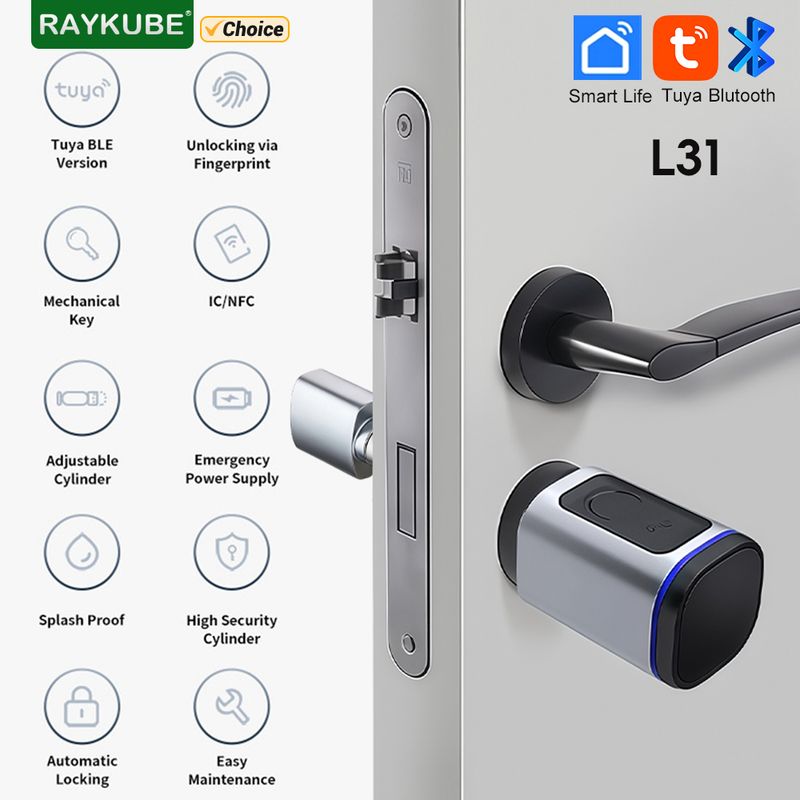 RAYKUBE L31 Tuya BLE Smart Fingerprint Electronic Door Lock 60/70mm Cylinder Lock With Tuya/ Smart Life APP/Keys/IC Card Unlock