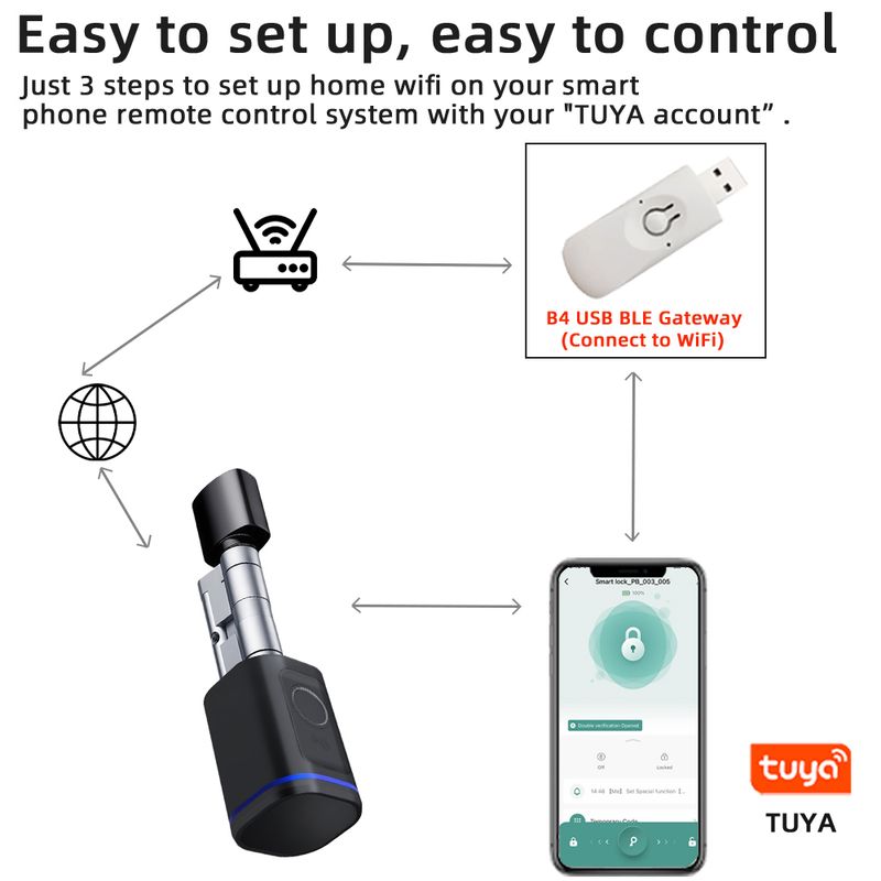 • (5 unlock methods): Tuya APP/ Fingerprint/ IC card/ Key