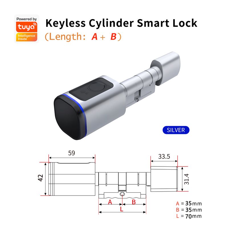 RAYKUBE L31 Tuya BLE Smart Fingerprint Electronic Door Lock 60/70mm Cylinder Lock With Tuya/ Smart Life APP/Keys/IC Card Unlock