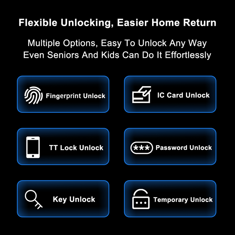We also provide backup unlocking methods such as IC cards and passwords. With triple protection, there's no need to worry about being unable to open the door.