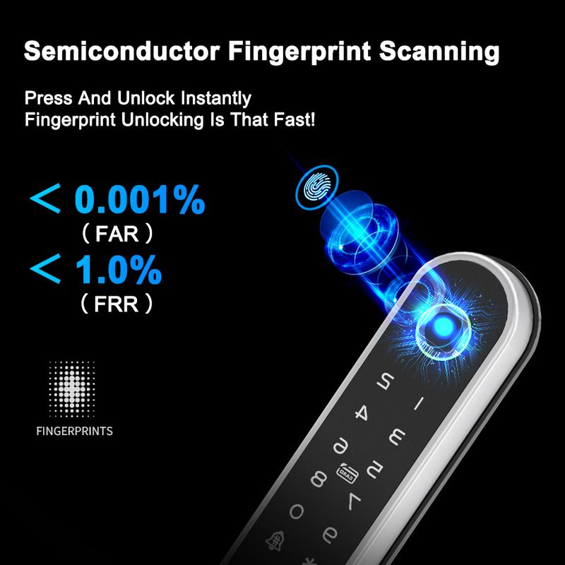 DQ06 is an advanced waterproof TT lock intelligent fingerprint lock. 3.1 mm narrow design is applicable to more than 99% of doors, such as Aluminum Door, Bridge-cut Alum Door, Framed Glass Door, Wood Door, Sliding Door, Swing Door, Screen Door etc., Home, Office, Hotel, Apartment, Airbnb, etc