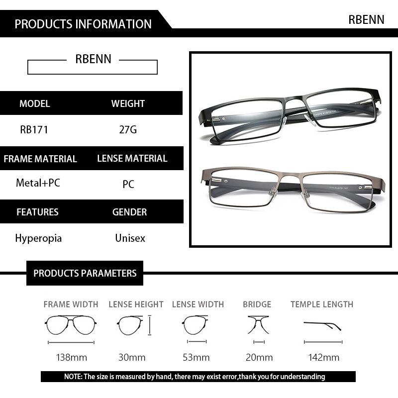 RBENN Metal Frame Men Reading Glasses Vintage Business Hyperopia Eyewear Male Reading EyeGlasses +1.25 1.75 2.75 3.75 5.0 6.0