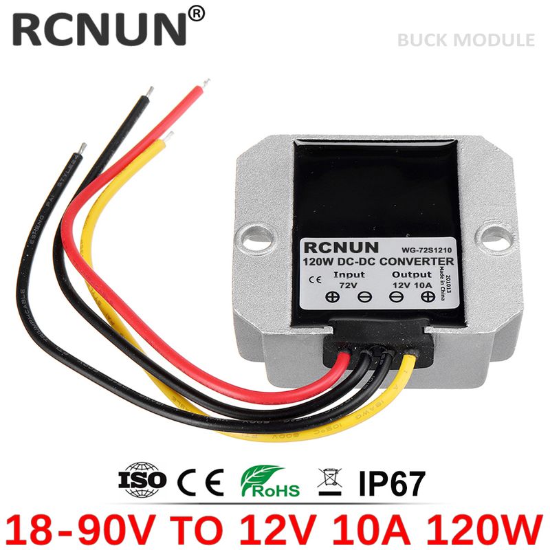 RCNUN 18-90V to 12V 5A 10A Buck Converter DC 24V 36V 48V 60V 72V to DC 12V 60W 120W Step-down Power Supply Module for Cars Solar