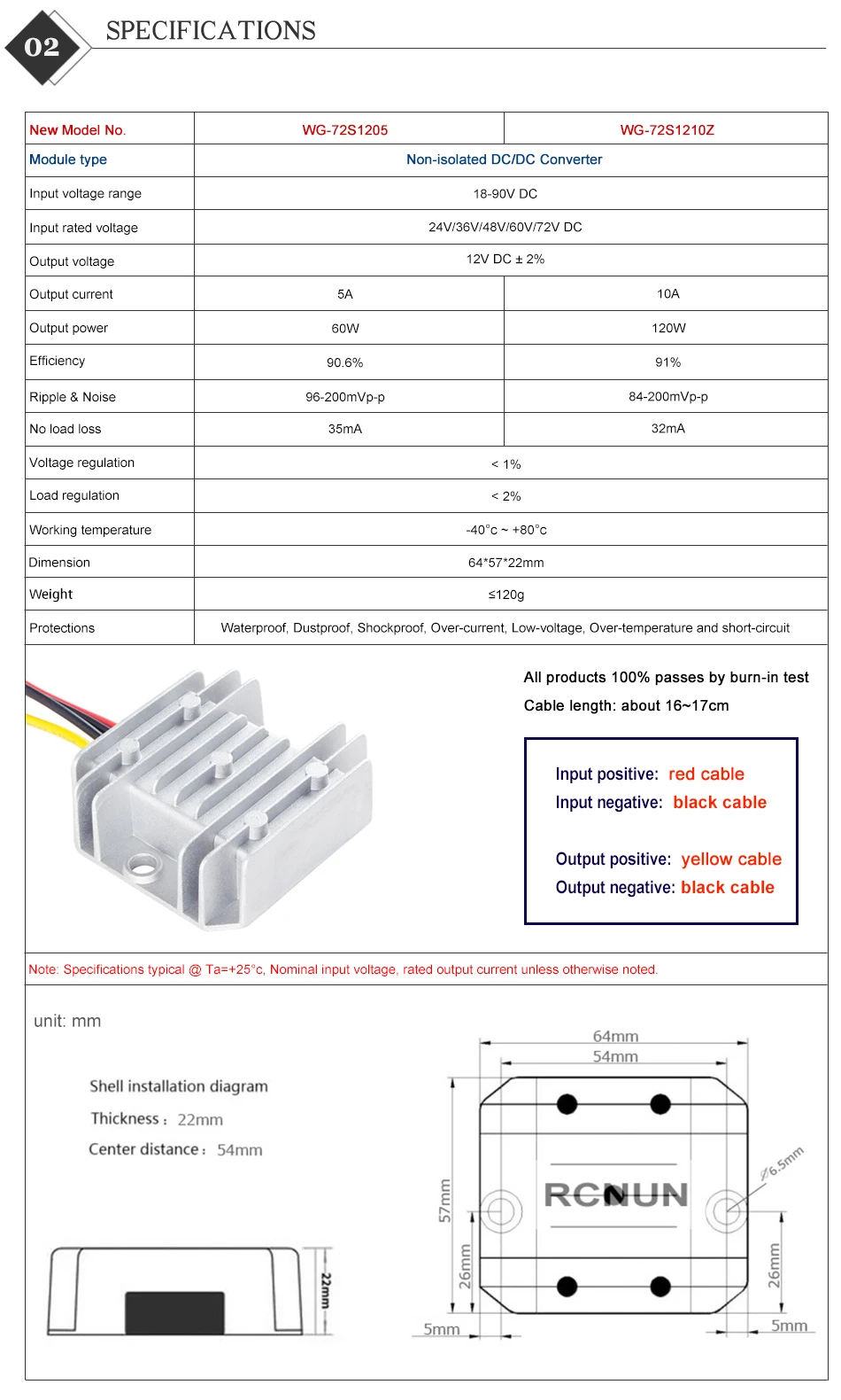 RCNUN 18-90V to 12V 5A 10A Buck Converter DC 24V 36V 48V 60V 72V to DC 12V 60W 120W Step-down Power Supply Module for Cars Solar