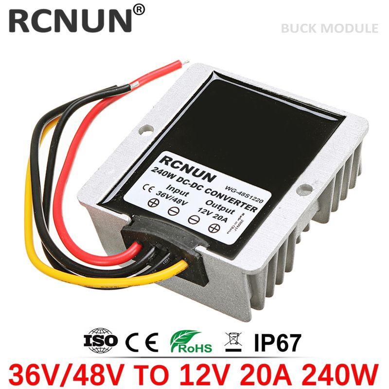 RCNUN 24V 36V 48V 60V 72V to 12V 5A 10A 20A Step-down DC DC Converter 60V-12V Voltage Regulator Buck Car Truck Boat Power Supply